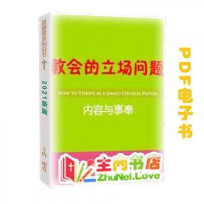 这是PDF电子书! 基督教电子书下载 主内电子书分享。 为方便检索与传播,本站使用电商格式展示,所有书籍价格为0,全部免费。本站所有书籍皆为主内肢体准备,免费供应。若有感动,可小额奉献,支持事工。 主内书店微信:ZhuNei-Love 或主内书店QQ:123880018 本电子书简介:本书简介:本书是史百克(T.Austin-Sparks)弟兄于一九五七年一次同工聚会所释放的信息《儿子的名分》,这是一个极严肃的信息。信息交通的对象是工人,但出于主的话,则叫凡蒙爱得神儿子的名分”者受激励。 在神爱中所赐予的,莫过于儿子的名分”与地位。没有一个爱比得上这个!我们都明白儿子所承受的是什幺。噢!神叫我们作祂的儿子!我们现在已经是有神儿子的名分”的人!但对这一个我们认识有多少?感谢神!藉着我们的弟兄领我们从祂的话语中,看见我们有神儿子的名分”这宏恩是什幺: ①在新约前是个奥秘;②在新约时代是福音的中心;③是基督徒生命的本质;④是圣灵内住的价值;⑤受教得造就的凭据;⑥是事奉的凭藉与原则;⑦是最高荣耀的命定。 特别申明:1,下单时,请在订单留言里,留下你的E-mail,我们会24小时内发送邮件。 2,PDF电子书,只适用于个人手机阅读,电脑阅读等。 3,本书有实物书,有电子书,本页面为电子书。 4,电子书有薄水印,不影响阅读。 实物书价格 = 电子书价格 x 5 《教会的立场问题》电子书-见证文集 江守道 4.12万字